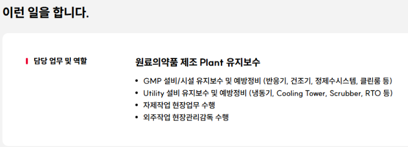 ▲ 의약품 원료 생산 설비 운영 및 유지 보수